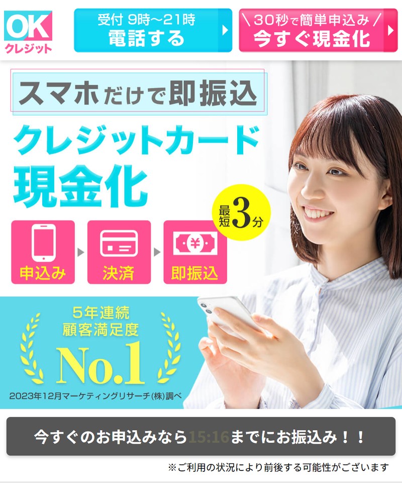 OKクレジット(爆速振込・夜間対応)